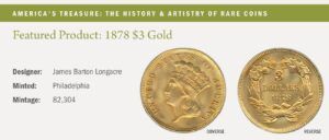 The coin we offer today is as unique as its design. First, it is an unusual denomination: $3. Second, the reason it was made is more than a little odd.